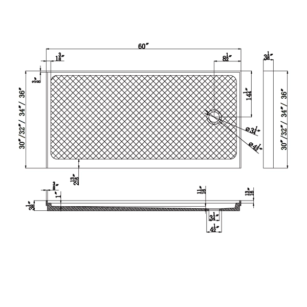 • Size (W x D x H  ) :32″*48″*4-1/8″;32″*60″*4-1/8″;34″*42″*4-1/8″;36″*36″*4-1/8″;36″*48″*4-1/8″;36″*60″*4-1/8″;